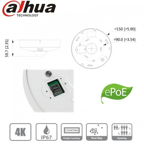 Avec une résolution de 12 mégapixels (4000 x 3000), la caméra dôme panoramique DAHUA permet de visualiser les moindres détails d’une pièce sans angle mort.