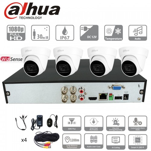 Etiquettes : kit 4 cameras dahua caméras, audio, dômes, 2mpx, vidéosurveillance, bnc, analogique