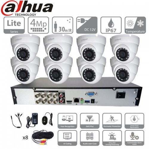 Etiquettes : kit 8 cameras dahua caméras, dômes, mpx, coaxial, vidéosurveillance, bnc, analogique